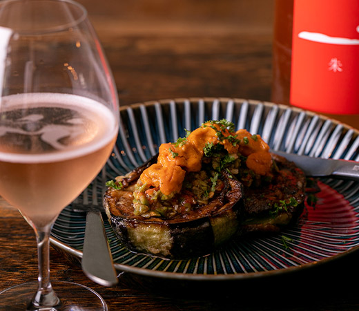辛口の泡と合わせることで、淡泊な茄子とウニの優しい甘味、アンチョビなどを用いたプッタネスカソースの塩味が際立ちます。
