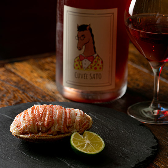 香箱ガニと赤ワインの贅沢なマリアージュ。