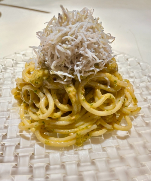 マスターが作った絶品ソースを使ってhonokaちゃんが仕上げた冷製パスタ!シラスたっぷりです!暑い夏に...