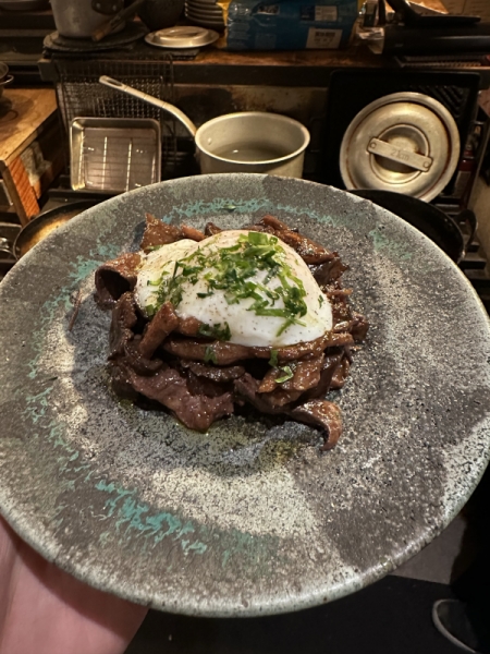 温玉と絡めて食べる鹿は絶対おいしい。赤ワインかビールか、ハイボールでも合いそうです!