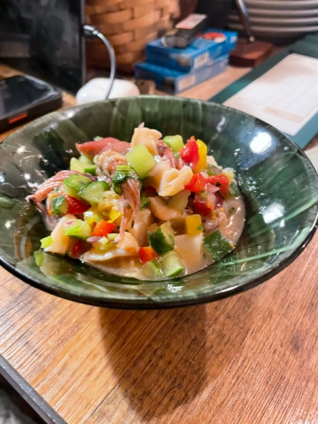 新メニュー、ホタルイカのペルー風マリネのご紹介です!今が旬のホタルイカや野菜を使った1品です!是非...