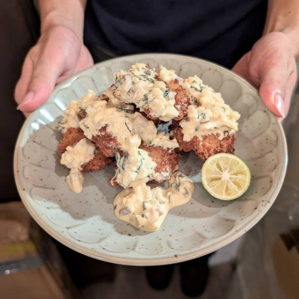 只今オンメニュー中の ハモフライ しば漬けタルタルソース。昨晩はたくさんオーダーいただきました!近...